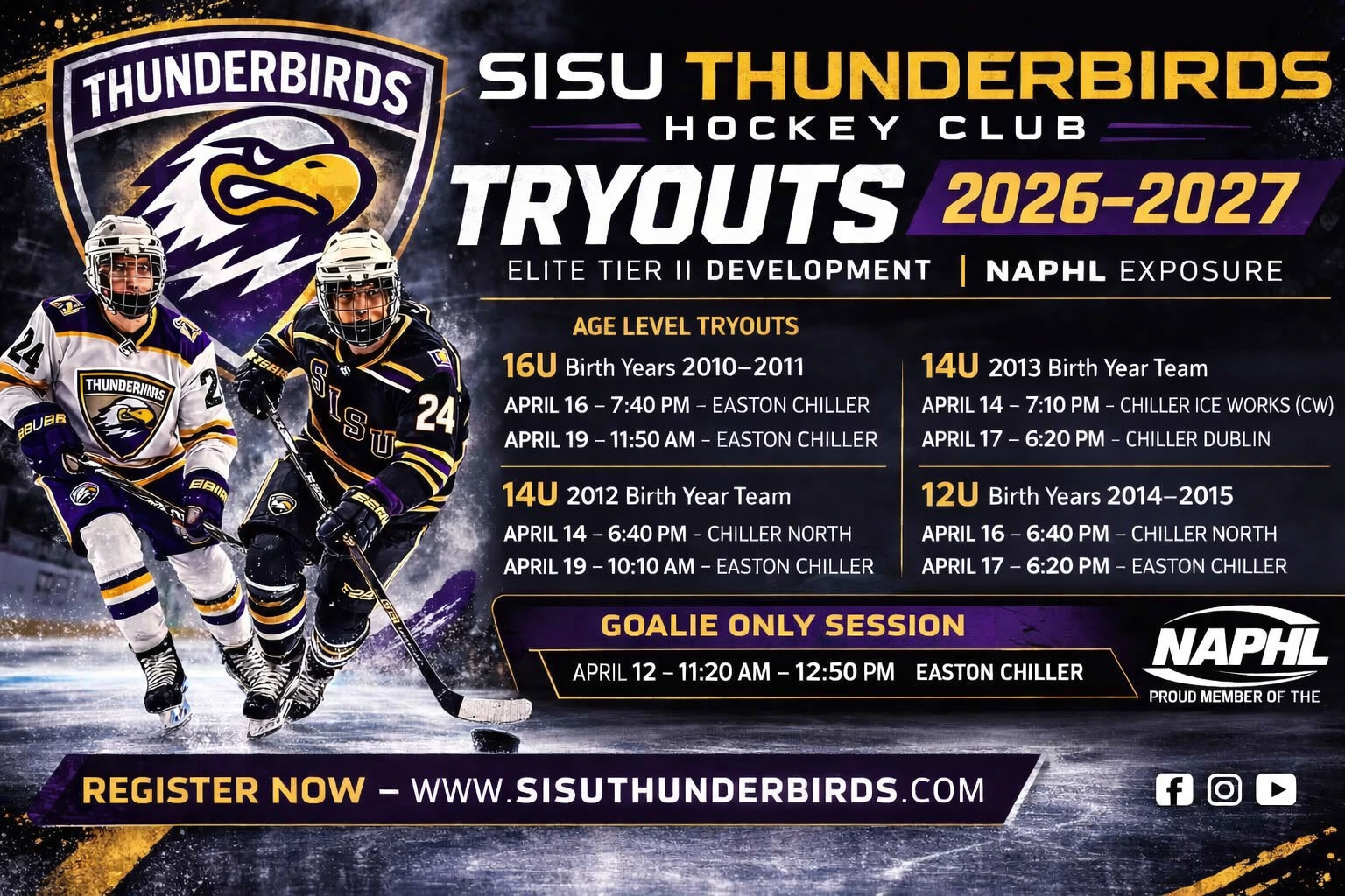 The SISU Thunderbirds Hockey Club is a leading Tier II program in Ohio. We aim to develop players' abilities and character on and off the ice so they're ready for travel, high school, juniors, college or beyond. We give them intense training, polish their skills, test them against top Tier II rivals in Ohio and nationwide at Showcase events. Our coaches stress players pursue academic excellence so they can reach new levels both as a student and athlete in Ohio and beyond.
